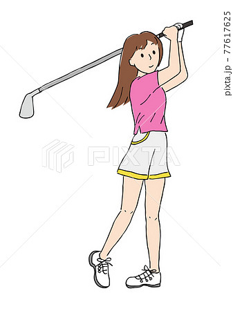 ゴルフのスイングをする女性のイラスト素材